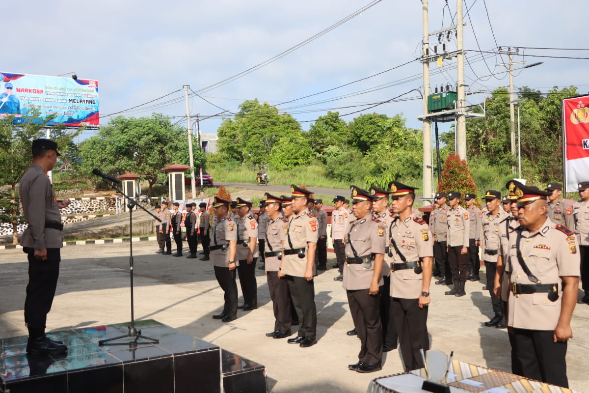 Kapolres memberikan ucapan selamat datang dan selamat bertugas kepada pejabat baru.
