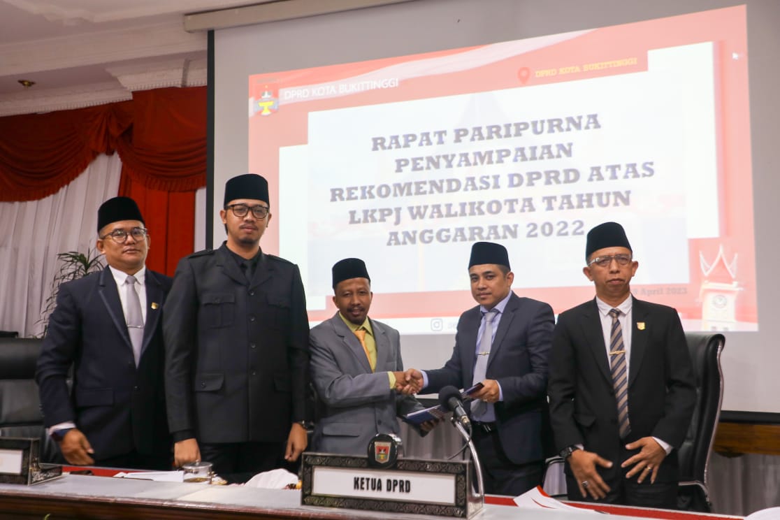 Sementara itu, Wali Kota Bukittinggi, Erman Safar, mengapresiasi hasil rekomendasi dari pansus LKPJ. “Kami apresiasi rekomendasi terhadap Laporan Keterangan Pertanggungjawaban Wali Kota Bukittinggi Tahun 2022. Ini merupakan masukan serta pemikiran yang konstruktif dan inovatif dari pimpinan dan anggota Dewan Perwakilan Rakyat Daerah Kota Bukittinggi,” ungkap Wako.