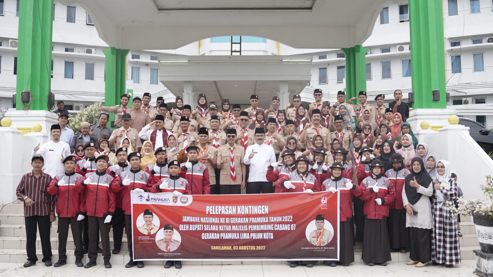 Limapuluh Kota,—Sebanyak 18 orang Pramuka tergabung dalam kontingen Limapuluh Kota resmi dilepas Bupati Limapuluh Kota Safaruddin Dt.Bandaro bertolak pada 10 Agustus nanti untuk mengikuti Jambore Nasional di Cibubur, Jawa Barat pada 14 hingga 21 Agustus 2022.