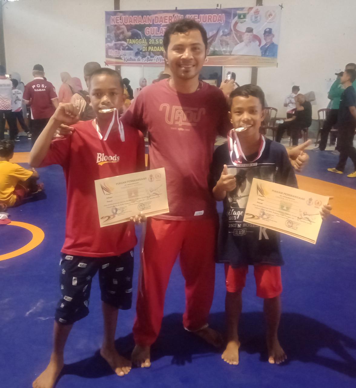 Kota Padang,Sumbar, Kejuaraan daerah (Kejurda) Gulat 2022 yang dilaksanakan di GOR H. Agus Salim kota Padang Sumatera Barat Minggu (21/8/2022) pegulat pemula yang dimiliki kabupaten Pasaman Barat yang turun pada kelas kadet 32kg dan kadet 35kg berhasil menggondol mendali emas.