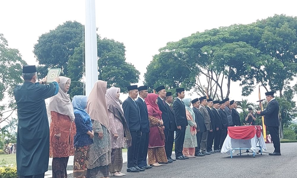 Bukittinggi— Sebanyak 20 jabatan eselon II, III dan IV dilingungan pemerintahan kota Bukittinggi bergeser. Proses mutasi, rotasi, promosi dan demosi, dibawah pimpinan Walikota Ramlan Nurmatias-Ibnu Asis di halaman Balaikota, Jumat (03/10/2025).
