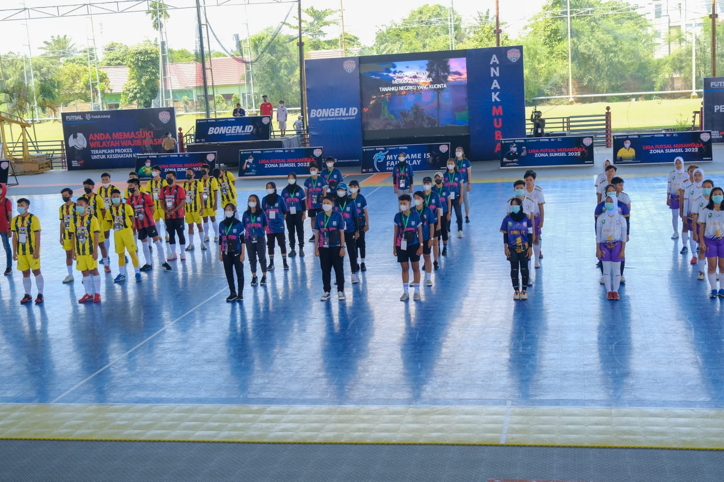 SEKAYU – Sebanyak 20 skuad tim futsal se-Sumatera Selatan turut memeriahkan Liga Nusantara Futsal Zona Sumatera Selatan 2022 di Kabupaten Musi Banyuasin, Kamis (10/3/2022).