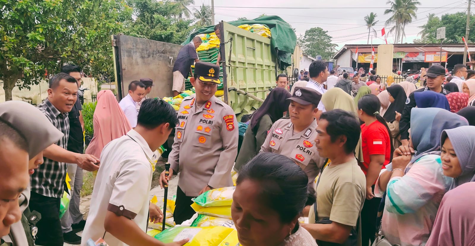 “Untuk hari ini, kami menyediakan 20 ton beras dengan sistem tiga kali pembagian. Setiap warga hanya diperbolehkan membeli maksimal dua karung dengan harga Rp115.000 per dua karung. Aturan ini untuk mencegah penimbunan,” tegas Kapolres.