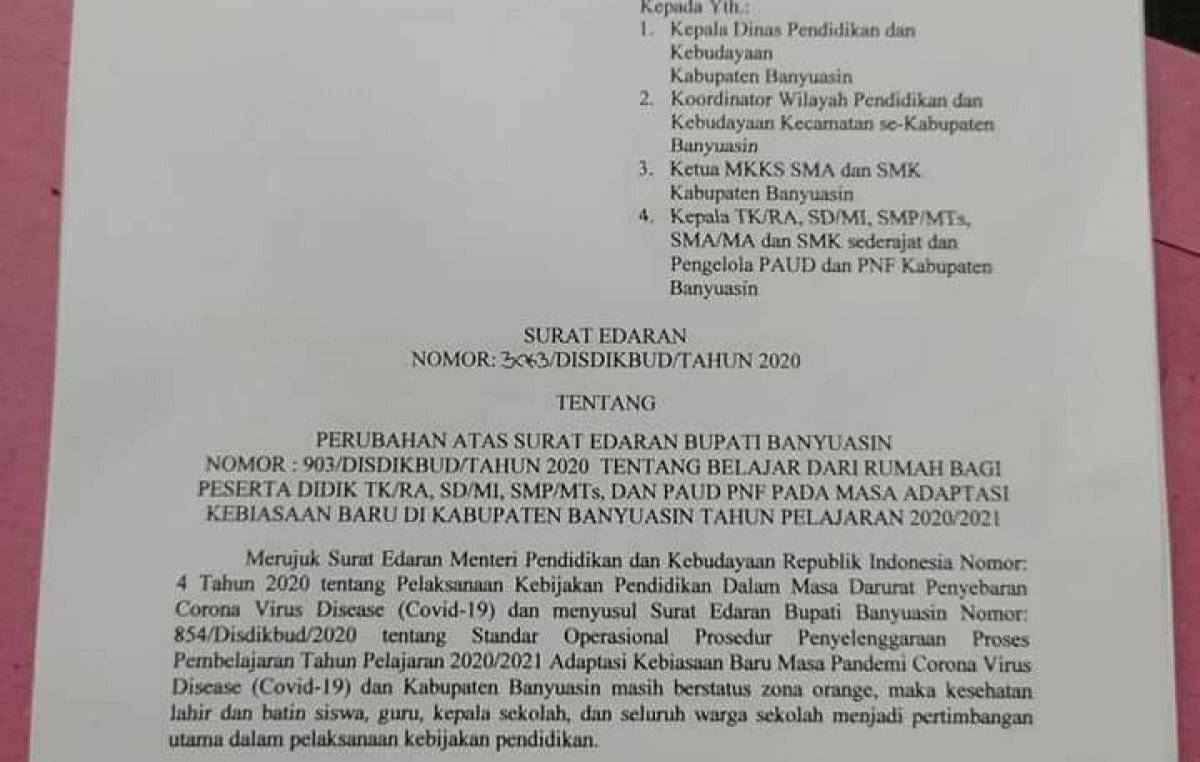 ” Melihat kasus covid di Banyuasin sudah sangat menurun, dan dari hasil rapat terbatas saya dengan Dinas Pendidikan dan Kebudayaan, Dinkes, Kodim 0430 dan Polres Banyuasin hari ini. Maka kami putuskan mulai tanggal 24 Agustus nanti akan memperbolehkan siswa belajar secara tatap muka di sekolah, “kata Bupati H Askolani, Rabu (12/8/2020).