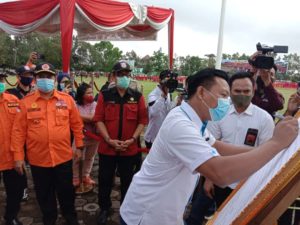 Bupati didampingi Wabup H Slamet dan unsur FKPD juga meninjau peralatan dan kesiapan Satuan Tugas (Satgas) dalam rangka penanggulangan Kebakaran Hutan, Lahan dan Kebun (Karhutlabun). Apel ini juga tetap mematuhi protokol kesehatan cegah covid 19.