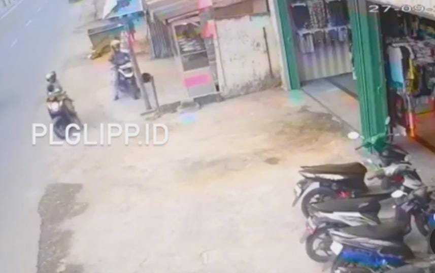 memperlihatkan aksi pasutri yang sedang melakukan (curanmor) pencurian sepeda motor di salah satu warung makan Denay Baru di kawasan jalan Mataram kecamatan Kertapati kota palembang yang terjadi pada rabu (27/03/23) siang