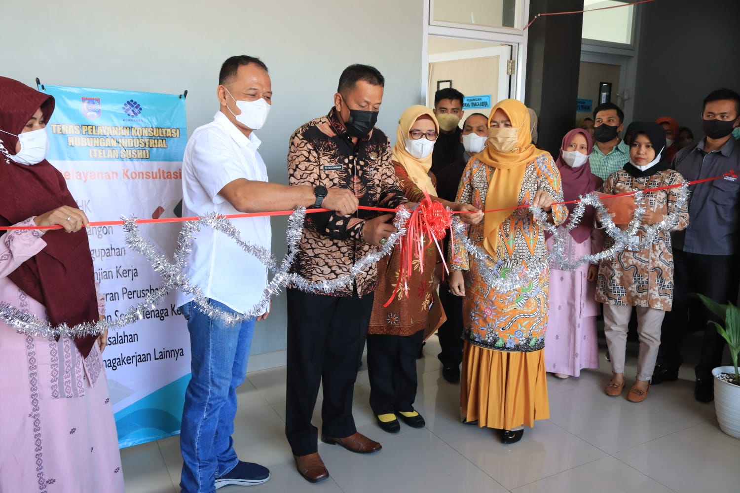 Wali Kota Riza Falepi yang diwakili Asisten II Elzadaswarman meresmikan Telan Sushi (Teras Pelayanan Konsultasi Hubungan Industrial) di kantor Dinas Tenaga Kerja dan Perindustrian Kota Payakumbuh yang berlokasi di Lingkungan Padang Kaduduak, Kelurahan Tigo Koto Diate, Kamis (24/3).