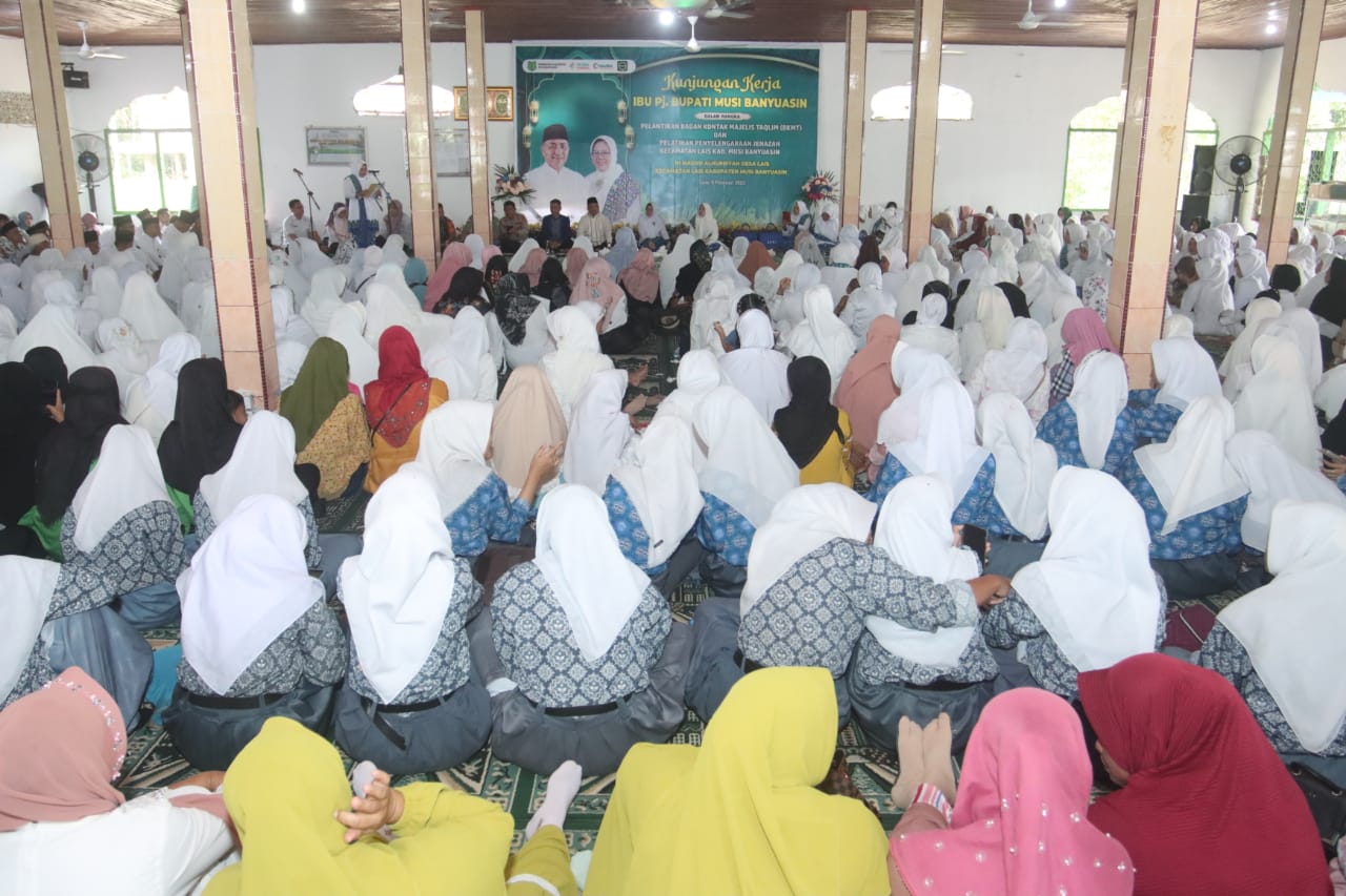 LAIS – Pengurus Badan Kontak Majelis Taklim (BKMT) Kecamatan Lais Masa Bakti 2022-2027, resmi dilantik oleh Pj Ketua Tim Penggerak PKK Kabupaten Musi Banyuasin Hj Asna Aini Apriyadi selaku Ketua Badan Kontak Majelis Taklim (BKMT) Kabupaten Muba, di Masjid Agung Al-Hurriyah Desa Lais Kecamatan Lais, Rabu (8/2/2023).