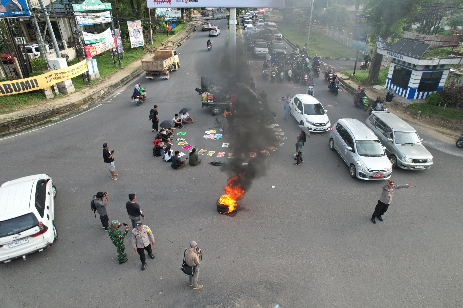 Aksi yang berlangsung pada Kamis (11/12/2025) di simpang Bank Indonesia (BI) Telanaipura, Kota Jambi itu dipenuhi berbagai poster, instalasi visual, dan orasi yang menegaskan bahwa bencana ekologis merupakan pelanggaran HAM struktural yang harus diusut tuntas. Para peserta aksi menuntut pemerintah pusat dan daerah untuk: