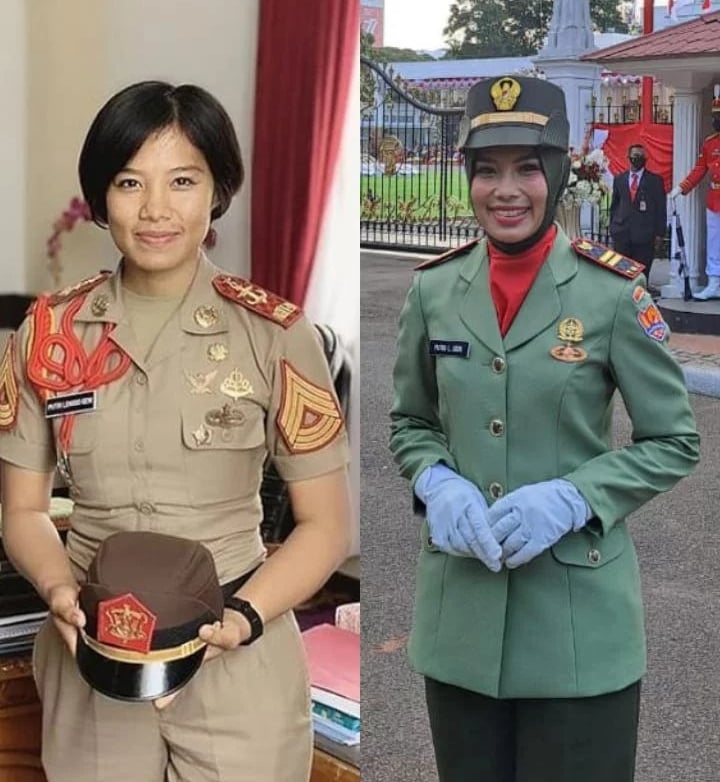 Putri tampil dengan memakai pangkat satu tingkat lebih tinggi dari pangkatnya saat ini, yaitu Lettu.