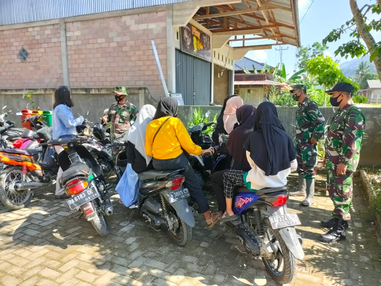 HEADLINESRIWIJAYA.COM Lima Puluh Kota – Anggota Satgas TMMD/N ke 111 tidak bosan-bosannya mengingatkan warga untuk mematuhi protokol kesehatan yang dianjurkan pemerintah. Hal ini tentunya untuk mendukung kebijakan pemerintah dalam menekan laju penyebaran COVID-19.