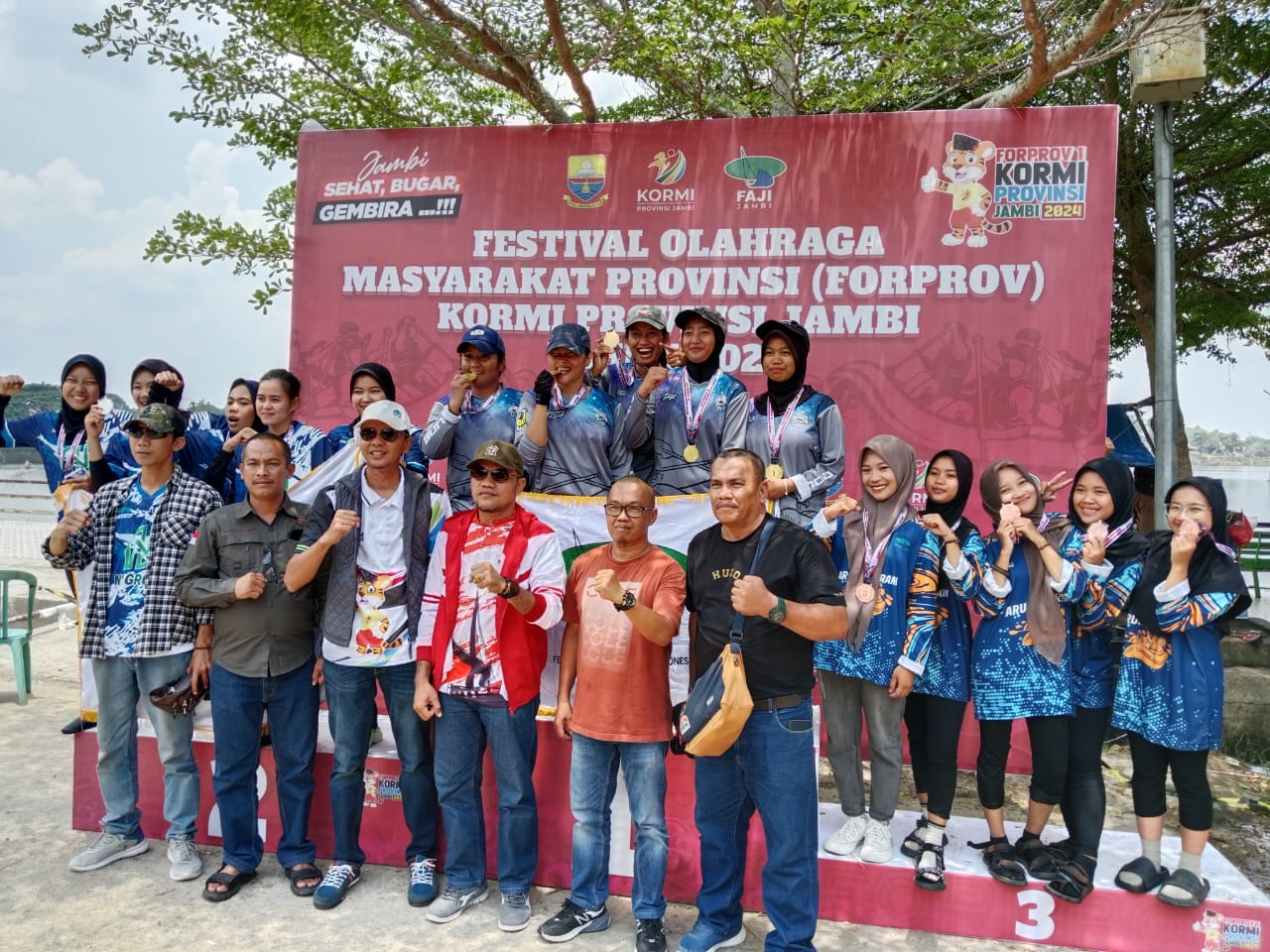 Jambi – Atlet Putri Federasi Arung Jeram Indonesia (FAJI) Kabupaten Tanjung Jabung Barat (Tanjab Barat), sukses mempersembahkan mendali perunggu di Festival Olahraga Masyarakat Provinsi (FORPROV), Komite Olahraga Rekreasi Masyarakat Indonesia (Kormi) 2024 Provinsi Jambi.