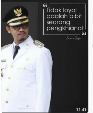 Foto Kepala Daerah Bukittinggi itu pakaian PDH disamping foto itu ada kata kata yang berbunyi ” Tidak loyal adalah bibi Seorang penghianat” dan dibawa kalimat tersebut ada kata kata Erman Safar.