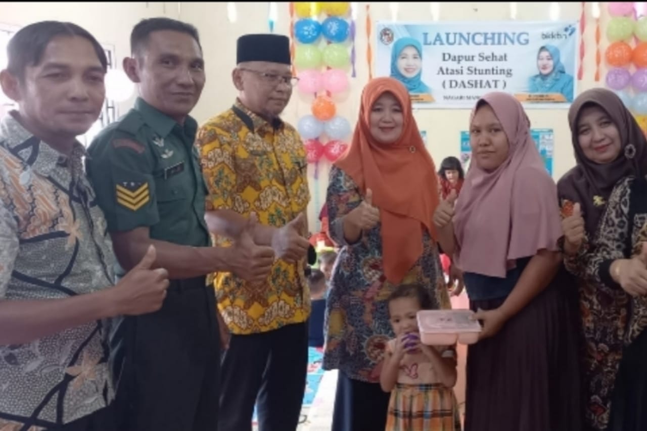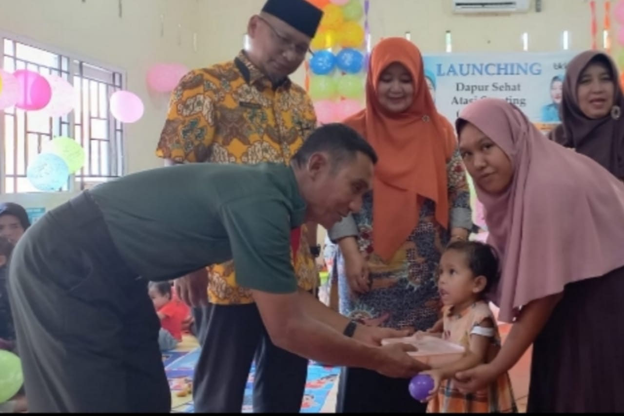 Lima Puluh Kota — Wujud kepedulian terhadap perkembangan Balita, Babinsa Nagari Manggilang personil Koramil 02 Pangkalan Kodim 0306/50 Kota Serka Iriadi menghadiri acara Launching Dapur Sehat Atasi Stunting, bertempat di aula kantor Nagari Manggilang Kecamatan Pangkalan Koto Baru. Senin (31/7/2023).