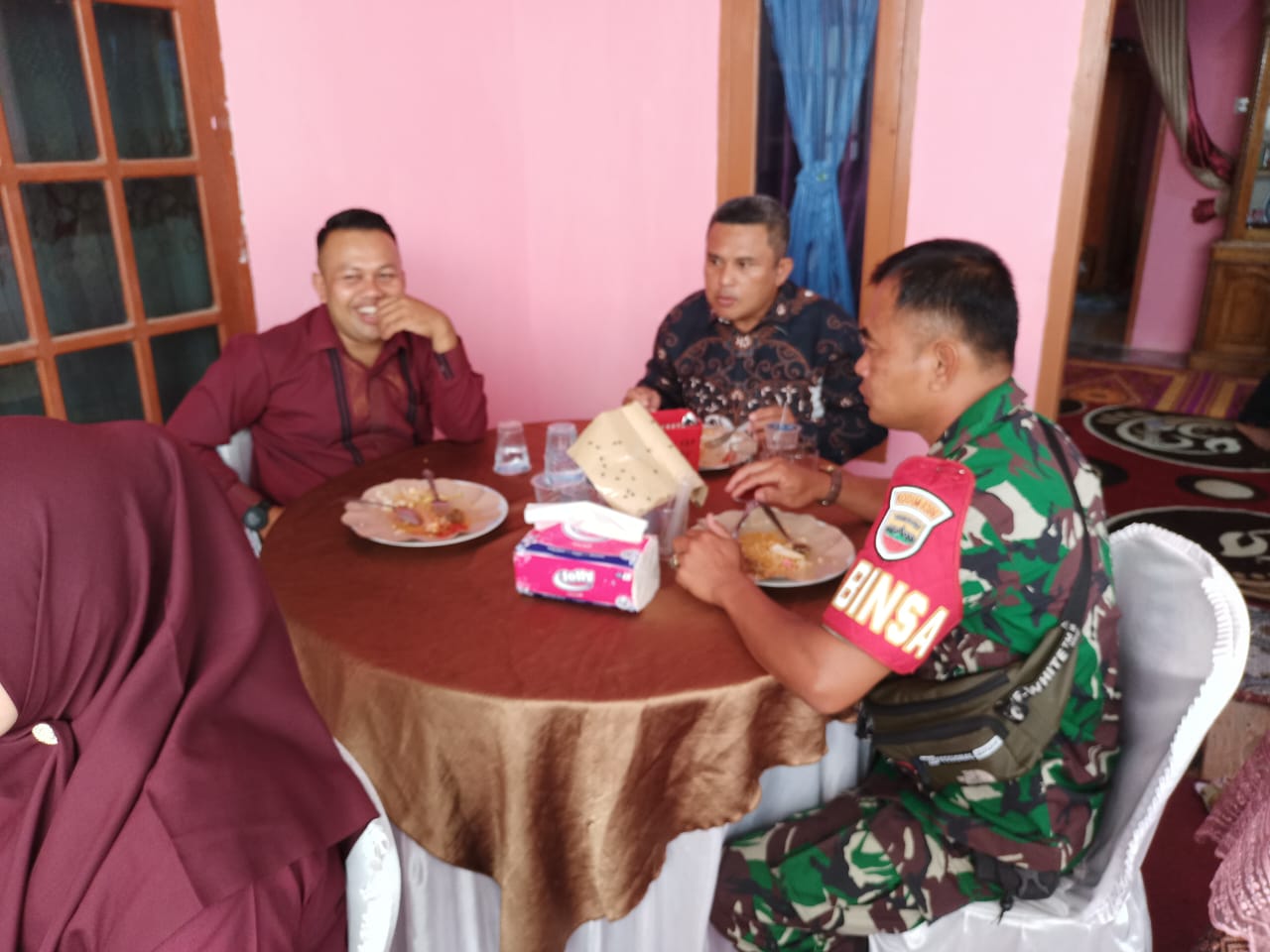 Lima Puluh Kota — Babinsa Koramil 04 Luak Kodim 0306/50 Kota Sertu Agung turut menghadiri undangan resepsi pernikahan salah seorang warga binaan di Jorong Pakan Rabaa Nagari Batu Payung Kecamatan Lareh Sago Halaban. Minggu (29/10/2023).