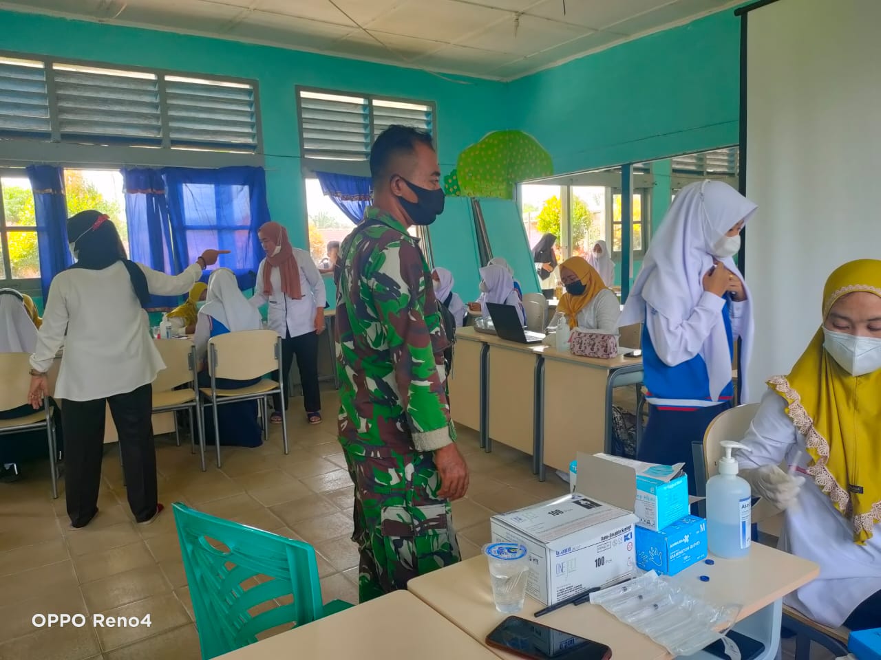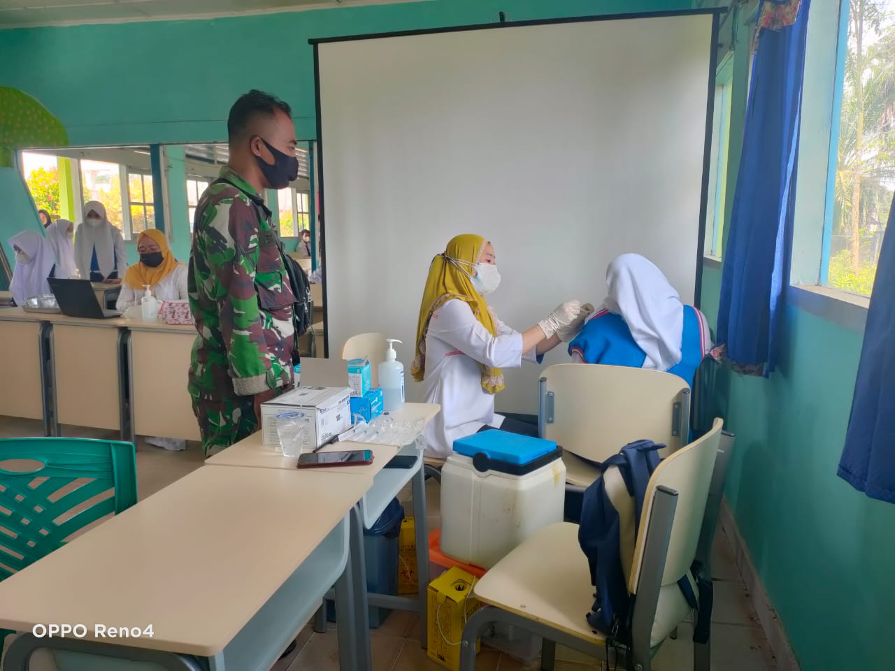 Turut hadir Danramil 401-01/sungai lilin Kapten Arm Indra jaya melalui Babinsa Serda Erujuki monitoring giat vaksinasi covid-19, di UPT Puskesmas karya maju. Kec. Keluang kabupaten Musi Banyuasin, yg dilaksanakan pada hari ini sabtu (28/8/21) Adapun Registrasi : 100 orang, Dscreening : 100 orang, Dvaksin : 100 orang, Dosis 1 sinovac, berjumlah 97 orang yaitu : M.Umum : 12 orang, disabilitas : 2 orang, Lansia : 3 orang, remaja : 79 orang, guru : Dosis 2, Jumlah 3 orang yaitu Umum : 3 orang, Guru : 0 orang, Dosis 3