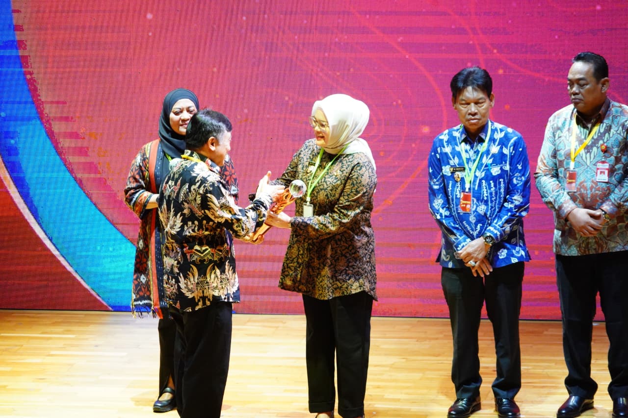 Piagam penghargaan diserahkan langsung oleh Deputi Bidang Pembangunan Kewilayahan Kementerian PPN/Bappenas, Dr. Ir. Metrilzam, M.Prof.Econ, Ph.D., kepada Wakil Bupati Banyuasin Netta Indian, SP. Acara digelar di Auditorium Sukarman Lt. 2 Perpustakaan Nasional RI, Jakarta Pusat, Senin (18/11).