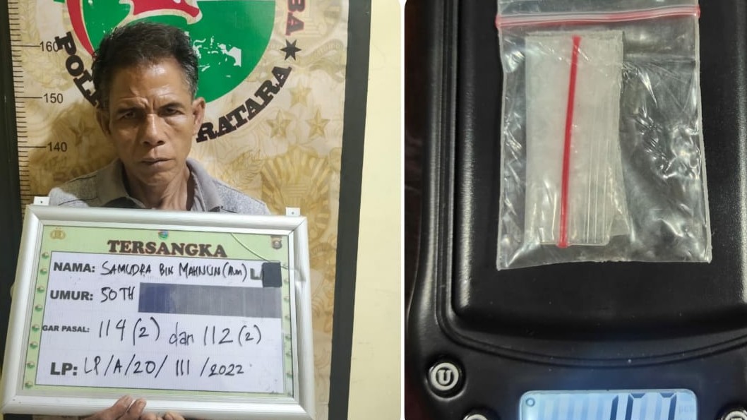 Samudra (50) merupakan warga Desa Pantai, Kecamatan Rupit, Kabupaten Muratara. Karena diduga tanpa hak menjual dan menguasai Narkotika gol 1 jenis sabu.