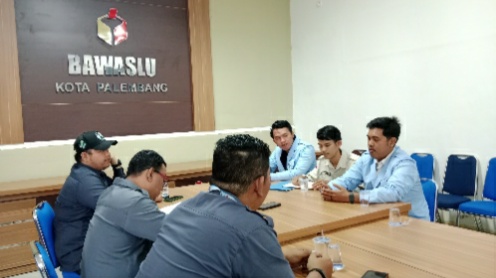 PALEMBANG, Badan Pengawas Pemilihan Umum (Bawaslu) Kota Palembang mendengarkan Audiensi Dewan Eksekutif Mahasiswa (DEMA) Fakultas Dakwah dan Komunikasi Universitas Islam Negeri (UIN) Raden Fatah Palembang di Kantor Bawaslu Kota Palembang Senin (7/10/2024)
