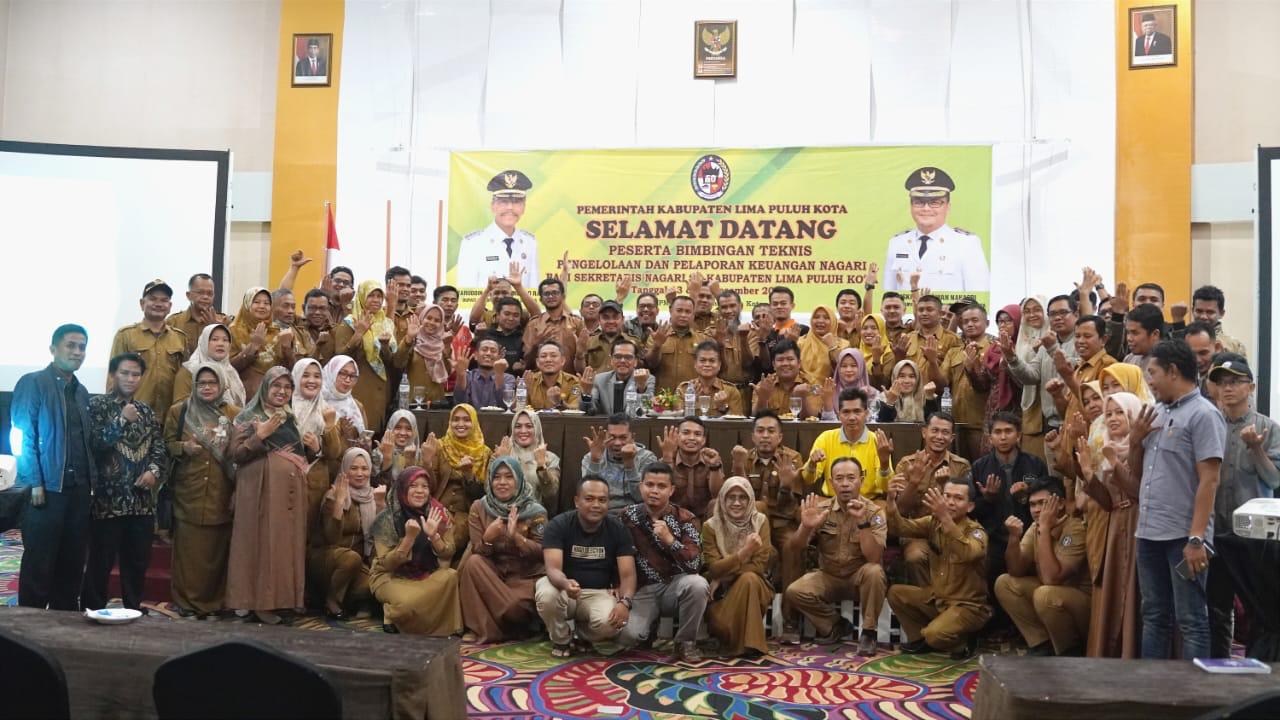 Bukittinggi, – Sekretaris Nagari harus memahami peran dan fungsi sebagai unsur pimpinan sekretariat nagari yang membantu Wali Nagari dalam menjalankan roda pemerintahan nagari dengan baik. Tidak hanya itu, Sekretaris Nagari harus transparan serta memahami regulasi dalam pengelolaan dan pelaporan keuangan nagari untuk menghindari risiko kesalahan administrasi yang dibarengi dengan pemahaman terhadap Permendagri Nomor 20 tahun 2018 tentang Pengelolaan Keuangan Desa dan Perbup Nomor 152 tahun 2018 tentang Pengelolaan Keuangan Nagari. Demikian rangkuman pesan yang disampaikan Bupati Limapuluh Kota, Safaruddin Dt.Bandaro Rajo saat memberikan pembekalan kepada 79 Sekretaris Nagari yang hadir dalam kegiatan Bimbingan Teknis Pengelolaan dan Pelaporan Keuangan Nagari, di Grand Rocky Hotel, Selasa Malam (13/12/2022). Bimtek yang diselenggarakan oleh Dinas Pemberdayaan Masyarakat dan Desa/Nagari (DPMD/N) merupakan upaya Pemerintah Kabupaten Limapuluh Kota dalam meningkatkan kemampuan sumber daya manusia (SDM) Aparatur Pemerintahan Nagari khususnya Sekretaris Nagari dalam mengkoordinasikan pengelolaan keuangan nagari yang transparan, akuntabel, partisipatif, tertib, dan disiplin.