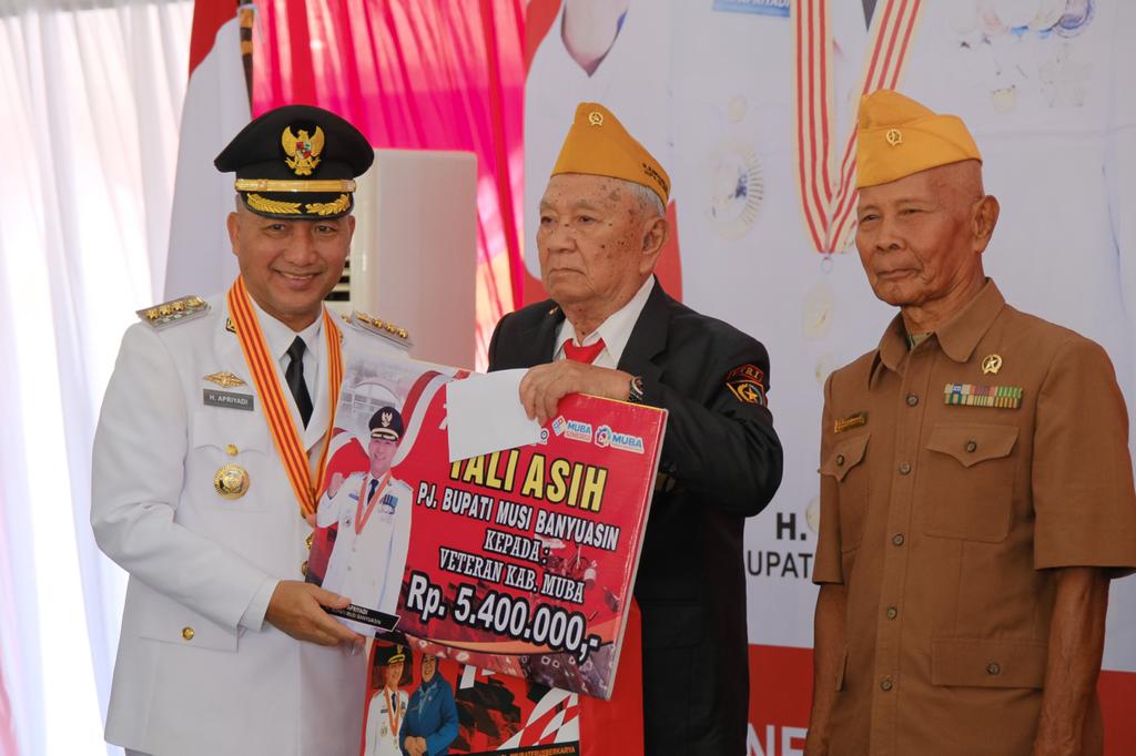 Pada momentum HUT RI ke-77 kali ini, Penjabat (Pj) Bupati Drs H Apriyadi memberikan bingkisan kepada 47 orang Janda Veteran 7 orang Veteran dengan tali asih 5.400.000 /Veteran dan 1.200.000 /Janda.