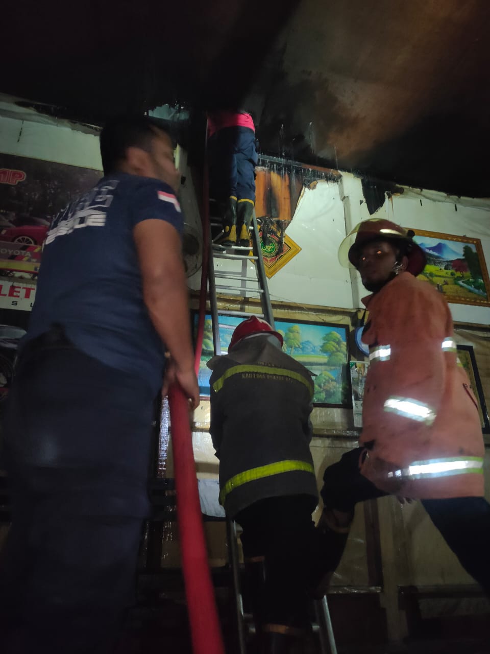 Petugas damkar langsung menanggapi permintaan bantuan dari warga yang langsung datang ke posko dengan sepeda motor tersebut. Berkat kecepatan dan kesigapan Branwir Kota Randang, kedai milik Khairil (80) itu berhasil diselamatkan, hanya terbakar bagian atapnya saja dan syukurnya tak jadi rata dengan tanah.