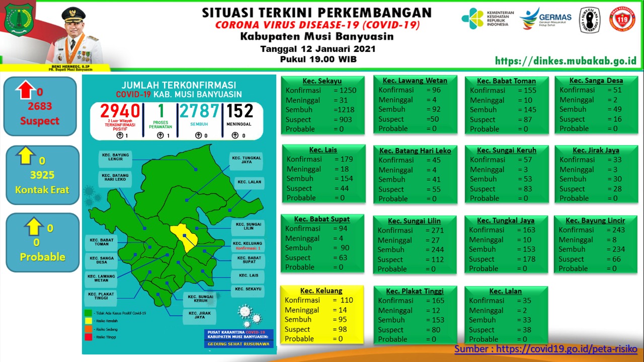 “Bertambah 1 kasus positif per 12 Januari 2022,” ungkap Jubir Gugus Tugas Penanganan COVID-19 Muba, Seftiani Peratita SS MKes.