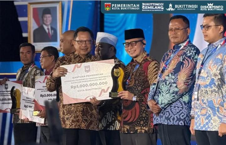 Penghargaan ini, diserahkan oleh Menteri Dalam Negeri, Tito Karnavian, diterima langsung Wakil Wali Kota Bukittinggi, Ibnu Asis, didampingi Sekda, Rismal Hadi, di Palembang, Sabtu, 24 April 2026.