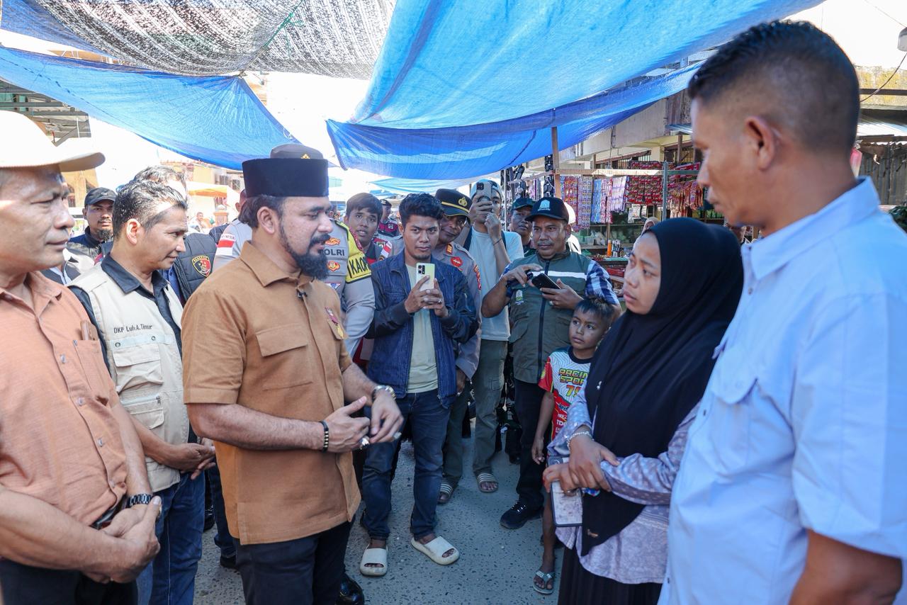 Usai meninjau SPBU, Bupati bersama Kapolres melanjutkan pemantauan ke Pasar Peureulak. Kegiatan ini dilakukan untuk memastikan ketersediaan serta stabilitas harga bahan pokok menjelang meugang dan Idul Fitri.