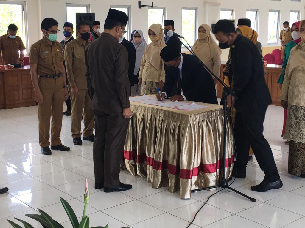 Sekda menyampaikan lima pesan kepada Kepala UPTD Puskesmas yang baru dilantik agar bekerjasama dengan tenaga kesehatan yang sudah bertugas lebih dahulu dalam mengatasi masalah kesehatan masyarakat