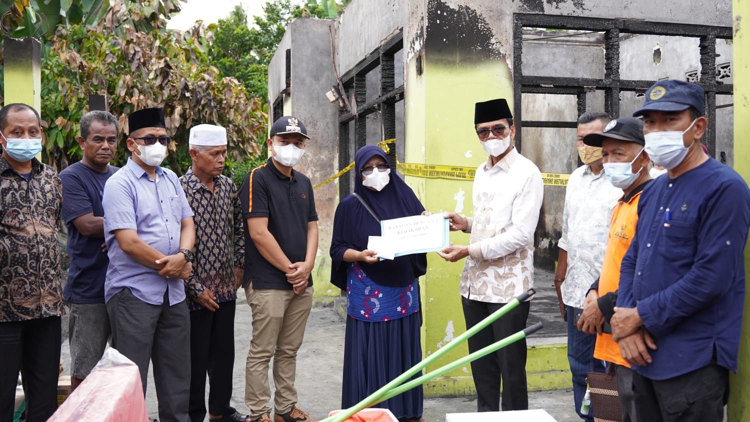 Limapuluh Kota,Headlinesriwijaya.com — Neni Asnita, 47 tahun, warga Jorong Koto, Nagari Simalanggang, Kecamatan Payakumbuh yang mengalami musibah kebakaran rumah mendapat perhatian dari Bupati Limapuluh Kota Safaruddin Dt. Bandaro Rajo. Musibah kebakaran terjadi pada Sabtu kemarin (12/02) sekitar pukul 12.35 WIB itu telah menghanguskan rumahnya.