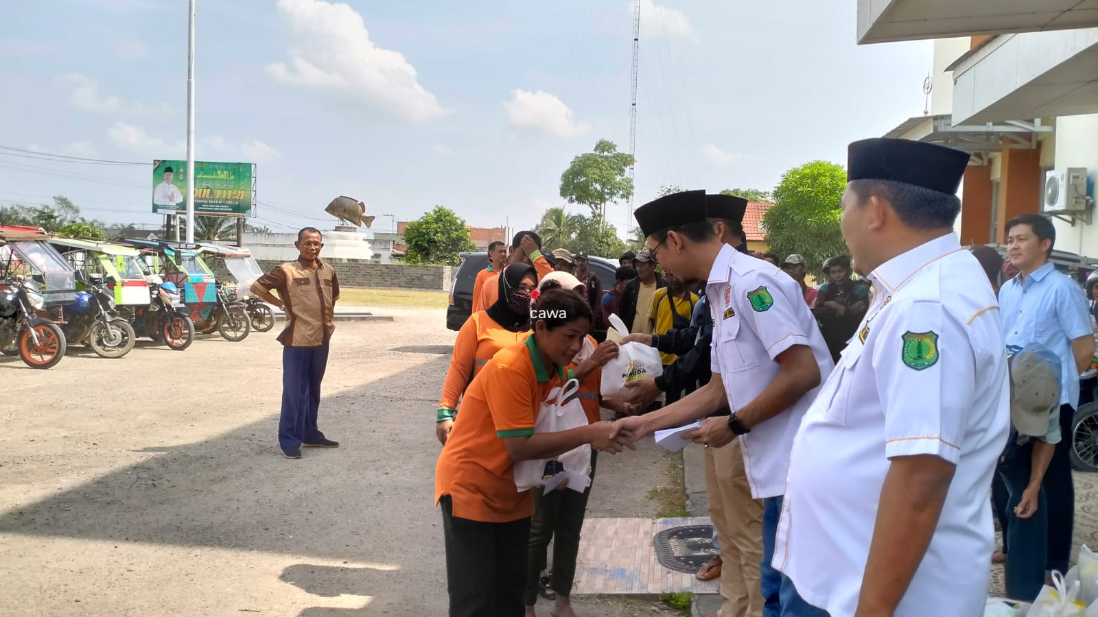 Bayung Lencir, MUBA– Camat Bayung Lencir bersama Karang Taruna bagikan sembako ke warga, Driver bentor dan petugas kebersihan, Sabtu (15/4/2023) di halaman Kantor Camat Bayung Lencir.