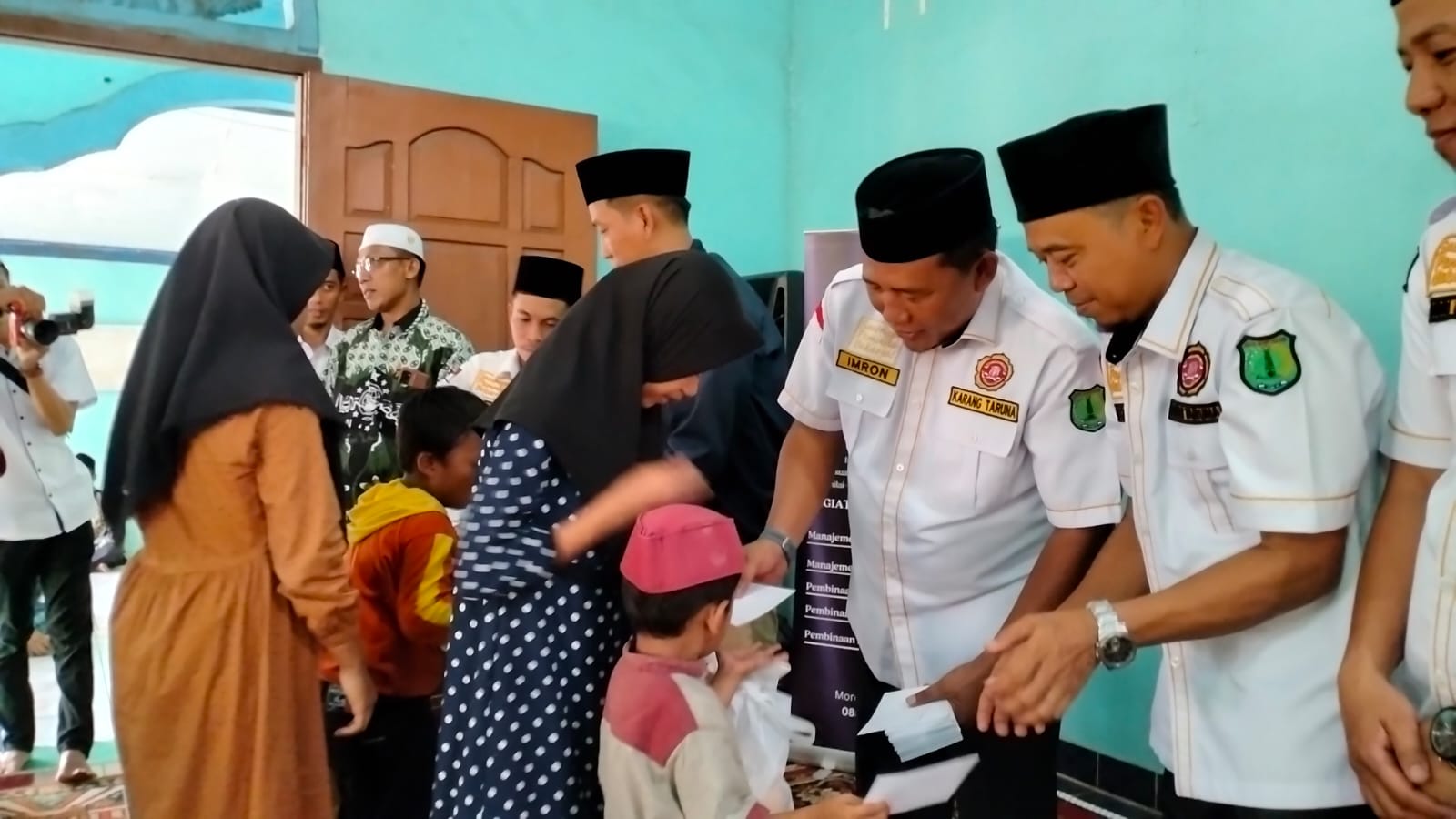 Usai penyerahan sembako kepada petugas kebersihan dan pengendara bentor, dilanjutkan dengan penyerahan santunan kepada anak yatim, piatu di desa Mekar Jaya Kecamatan Bayung Lencir.