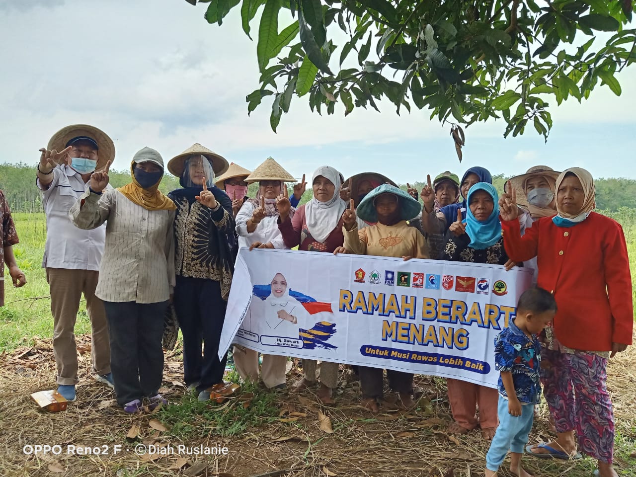 Antusias petani menyambut kedatangan Cawabup Suwarti dengan meneriakkan “Ramah Berarti Nomor 1 Menang Menang Menang”.