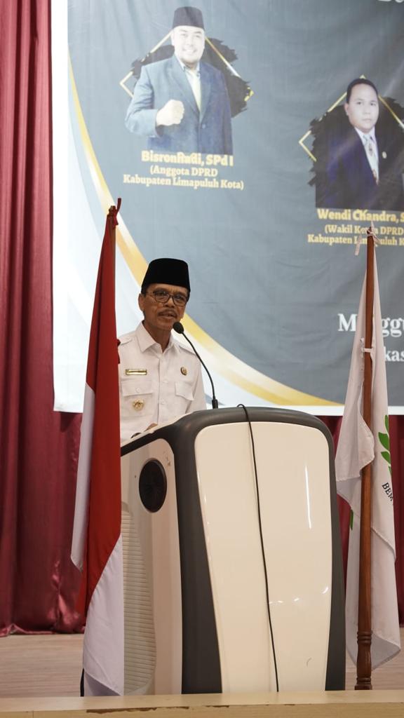 Limapuluh Kota-.Seorang pemimpin adalah penyalur harapan….(Kaisar Perancis, 1804-1815). Ratusan mahasiswa Politeknik Pertanian Negeri Payakumbuhdi Gedung Serba Guna Politani pada Minggu (26/06/2002) bak tersihir pandangannya ke mimbar utama. Di sana berdiri Bupati Limapuluh Kota Safaruddin Dt Bandaro Rajo. Apa pasal? Mereka terkesima dengan uraian Bupati Limapuluh Kota Safaruddin Dt Bandaro Rajo tentang kepemimpinan. Ya, hari itu Bupati Safaruddin selalu tampil low profile di daulat memberi motivasi sekaligus sebagai narasumber utama (keynote speech) pada Latihan Kepemimpinan Tingkat Dasar (LKTD) Badan Eksekutif Mahasiswa (BEM) Politani. Topik yang diangkat tentang kepemimpinan yang dinukil dari perjalan karir Bupati Safaruddin di politik dan pemerintahan.