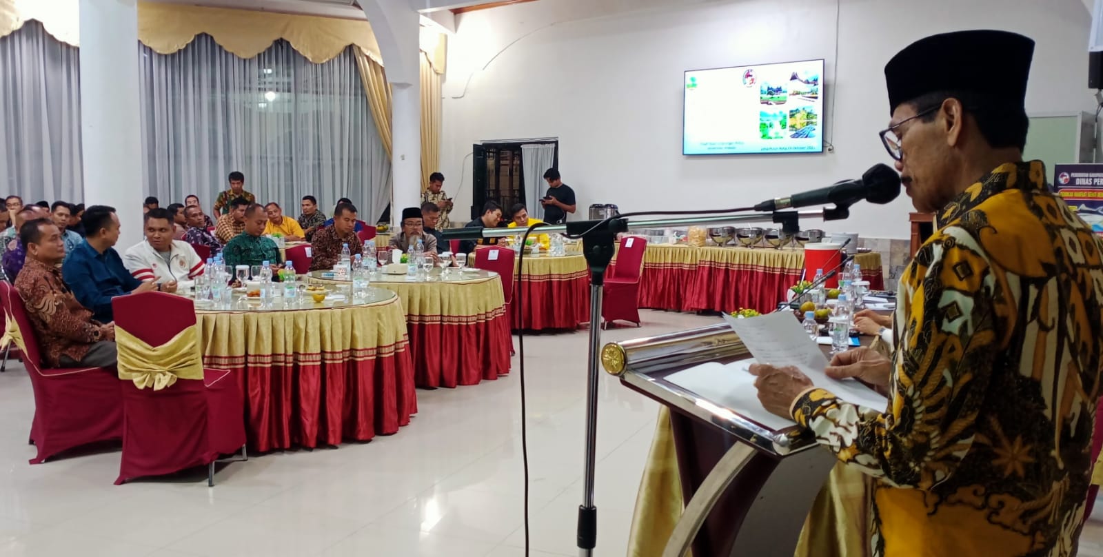 Lima Puluh Kota — Komandan Kodim (Dandim) 0306/50 Kota Letkol Inf Adri Asmara Yudha bersama Forkopinda hadiri konsultasi publik dalam rangka penyusunan Kajian Lingkungan Hidup Strategis (KLHS) Rencana Pembangunan Jangka Panjang Daerah (RPJPD) Kabupaten 50 Kota, bertempat di Ruang Pertemuan Rumah Dinas Bupati, Kamis (19/10/2023). Malam.