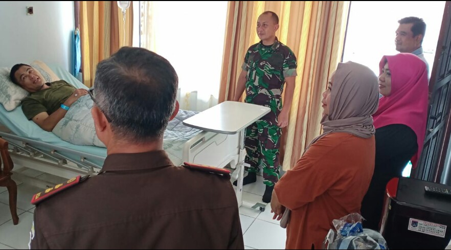 Payakumbuh — Komandan Kodim (Dandim) 0306/50 Kota Letkol Inf Adri Asmara Yudha bersama jajaran Forkopinda menjenguk Sekda Kota Payakumbuh bapak Rida Ananda yang sedang dirawat di Rumah Sakit Adnan WD. Selasa (14/11/2023).