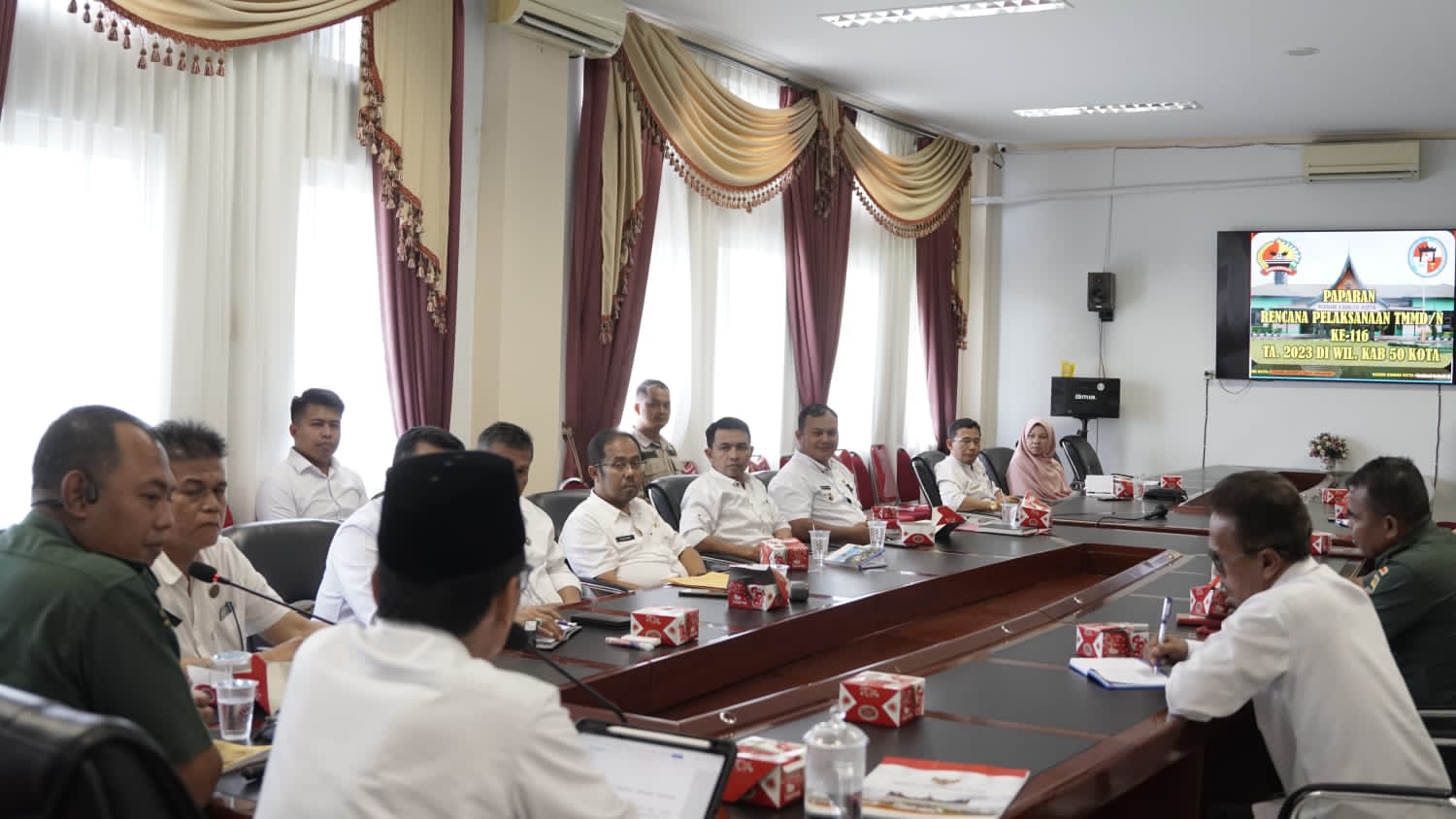 Diselenggarakan di Ruang Rapat Bupati, paparan yang disampaikan Letkol Deny turut dihadiri oleh Sekretaris Daerah Widya Putra, Asisten I Herman Azmar, inspektur beserta sejumlah Kepala Perangkat Daerah Kabupaten Limapuluh Kota, Wali Nagari Sitanang Hardison Dt.Tulahir, Wali Nagari Ampalu Fahmi Akbar, dan sejumlah pejabat utama Kodim 0306/50 Kota.
