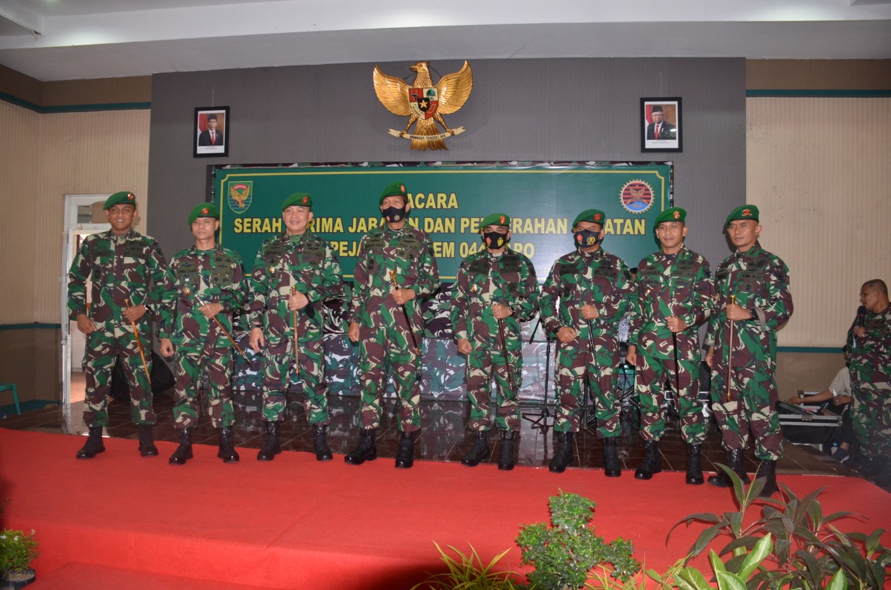 DANREM PIMPIN ACARA PENYERAHAN JABATAN KASREM 044/GAPO DAN SERTIJAB LIMA DANDIM SERTA DANYONIF 141/AYJP