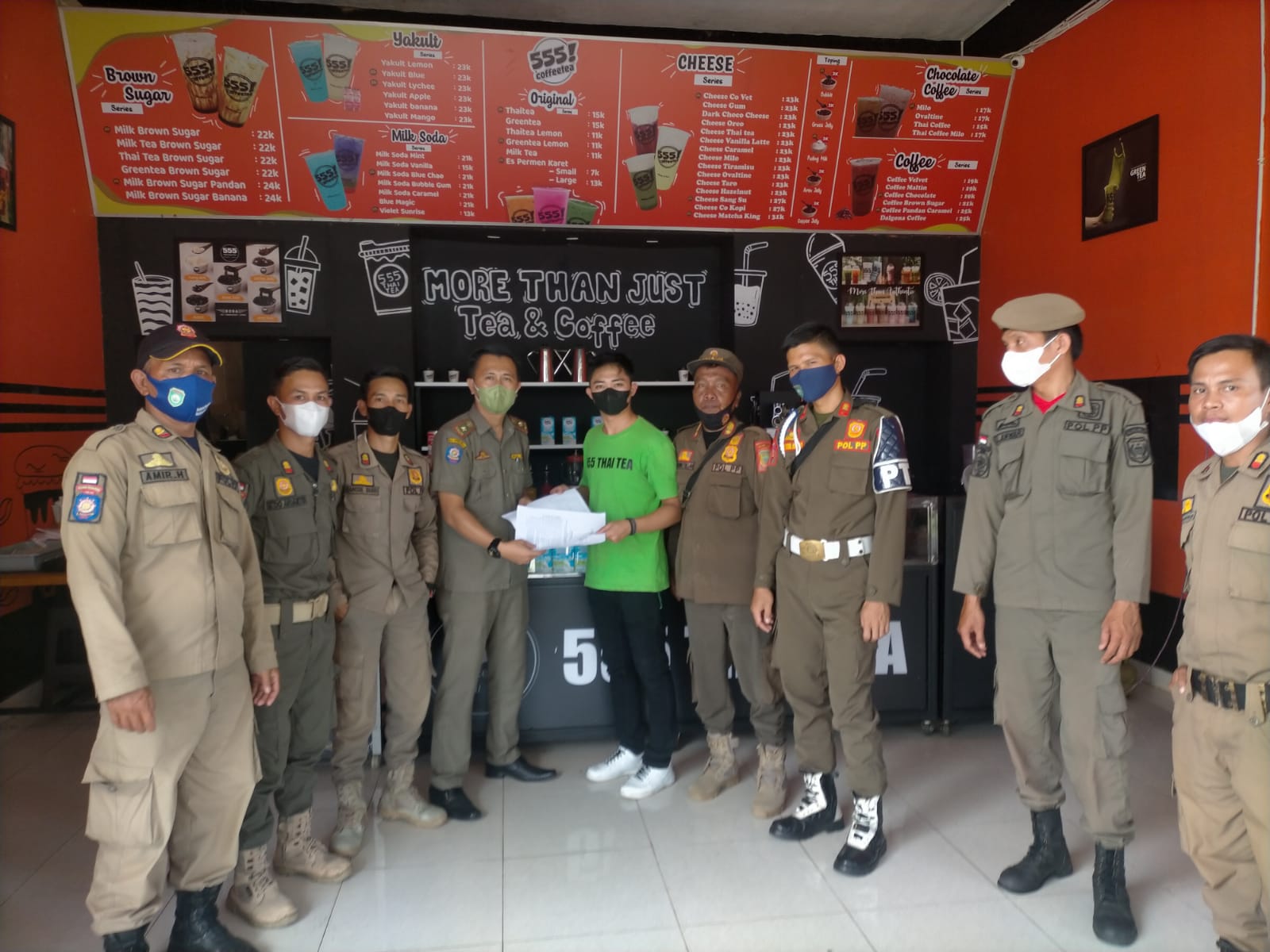 IMBAU : Satpol PP Kabupaten Empat Lawang memberikan surat himbauan kepada pemilik cafe agar menaati Prokes, Mei 2022 bulan lalu. Foto : Istimewa.(*)