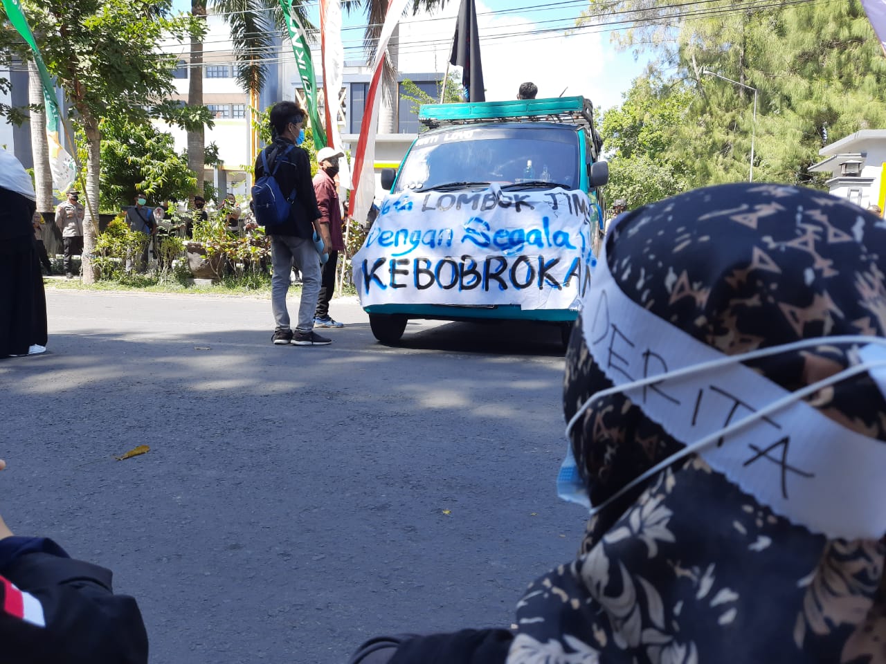 Sementara aksi tersabut dimulai dari simpang empat BRI Selong kemudian melakukan long mach ke kantor Bupati Lotim dengan mendapatkan pengawalan dari aparat kepolisian.