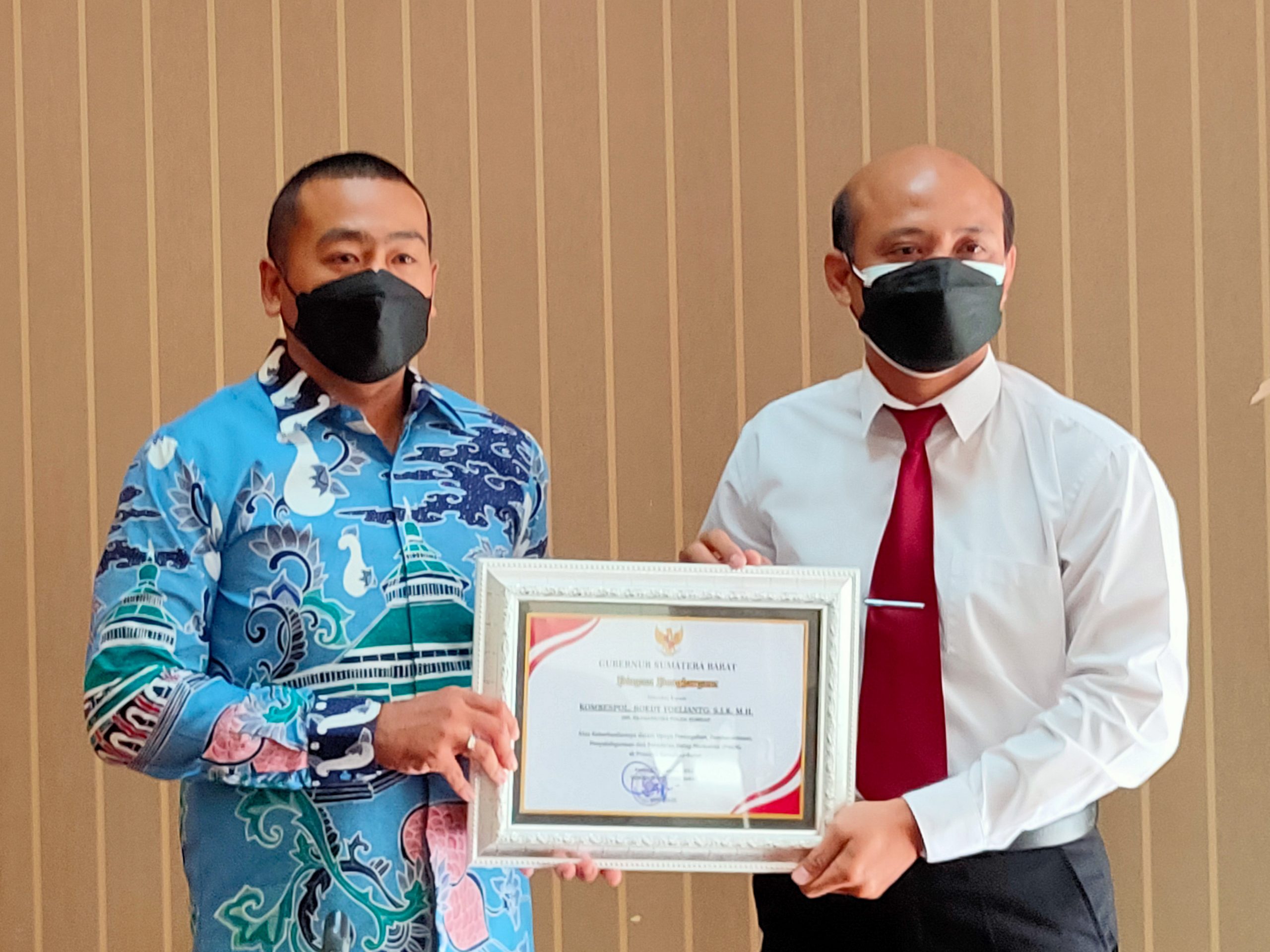 Apresiasi tersebut diberikan atas keberhasilannya dalam upaya pencegahan dan pemberantasan penyalahgunaan serta peredaran narkotika (P4GN) di Provinsi Sumatera Barat.