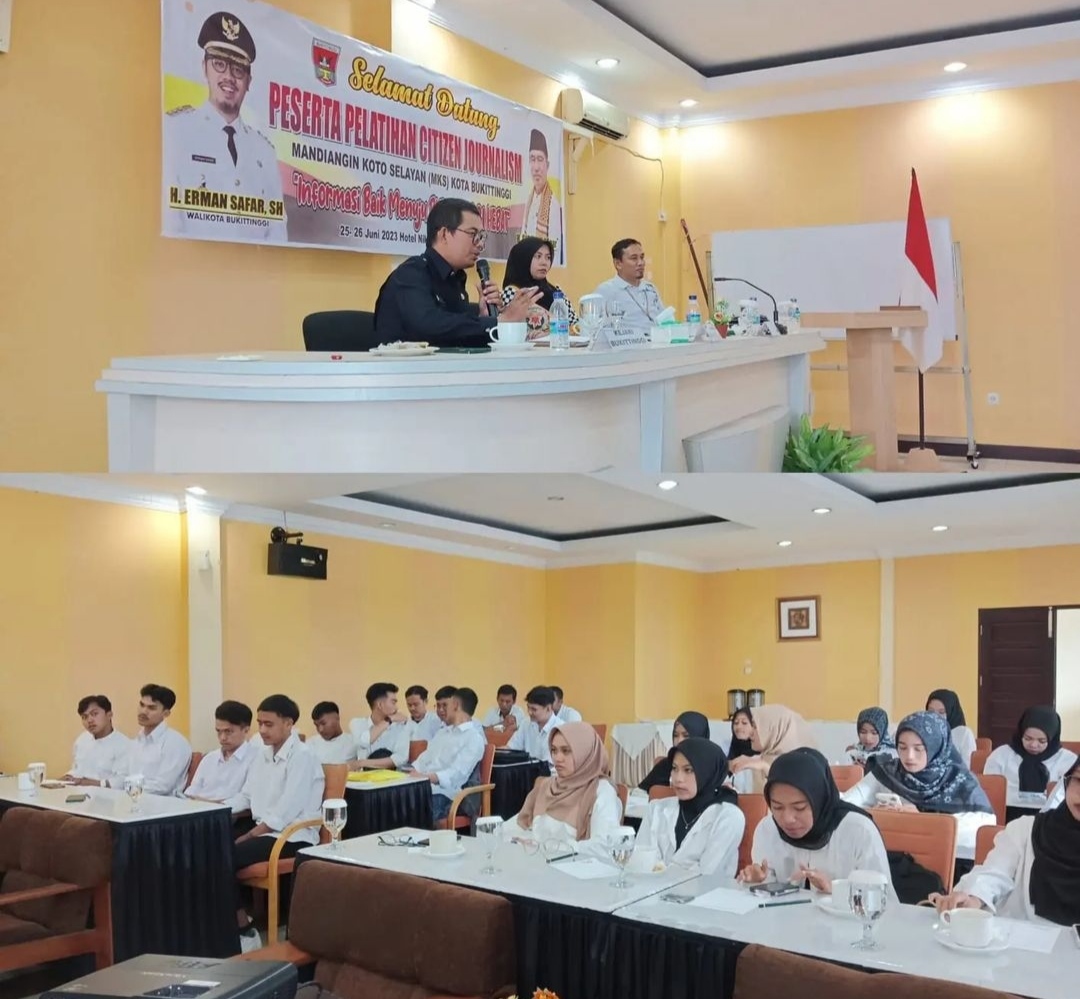 Bukittinggi —Pemerintah Kota Bukittinggi, melalui Dinas Komunikasi dan Informatika gelar pelatihan citizen jounalism untuk pemuda Kecamatan Mandiangin Koto Selayan (MKS). Kegiatan yang diinisiasi Anggota DPRD Bukittinggi, H. Syafril ini, dan dilaksanakan selama dua hari dari tanggal (25 dan 2/06/2023 di Hotel Nikita Palace.