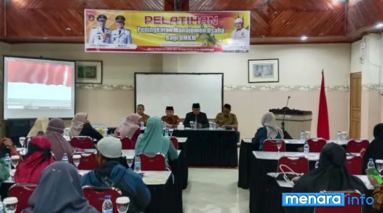 BUKITTINGGI– Wakil Wali Kota Bukittinggi, Ibnu Asis, membuka secara resmi Pelatihan Peningkatan Manajemen Usaha bagi pelaku UMKM yang digelar Dinas Koperasi, UKM dan Tenaga Kerja Kota Bukittinggi melalui anggaran pokok pikiran (Pokir) Anggota DPRD Bukittinggi, H. Arnis Malin Palimo di Hotel Nikita, Jalan Sudirman No. 55, Selasa (18/11/2025).