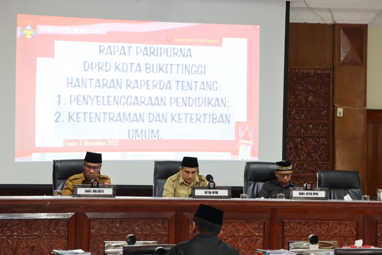 Ketua DPRD Bukittinggi, Beny Yusrial, menyampaikan, pada akhir tahun 2022 ini, DPRD menghantarkan dua ranperda inisiatif dewan. Pertama ranperda tentang ketentraman dan ketertiban umum. Kedua, ranperda penyelenggaraan pendidikan.