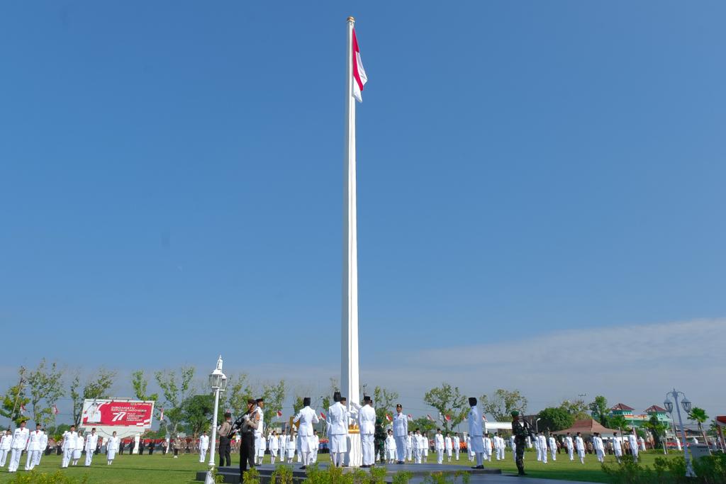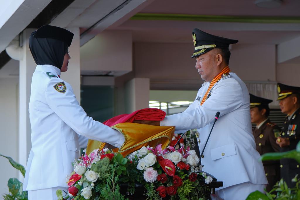 Pj Bupati Muba H Apriyadi menyampaikan bahwa upacara peringatan HUT ke-77 RI tahun ini memberikan makna yang luar biasa bagi bangsa Indonesia, khususnya Kabupaten Musi Banyuasin.