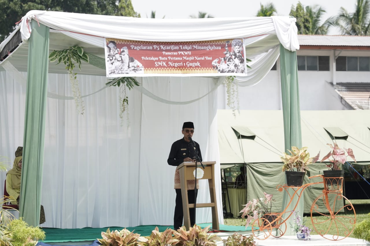Limapuluh Kota, — Berbagai tampilan kreatifitas dan bazar karya yang disuguhkan oleh siswa SMKN 1 Guguak meriahkan Gebyar Proyek Penguatan Profil Pelajar Pancasila (P5) tahun 2023. Bertemakan kearifan lokal, acara dibuka secara langsung oleh Bupati Limapuluh Kota, Safaruddin Dt.Bandaro Rajo bersama Staf Ahli Gubernur Bidang Pemberdayaan Masyarakat dan SDM Erinaldi dan disaksikan jajaran guru, siswa, dan orang tua murid SMKN 1 Guguak yang tampak kompak memakai baju adat Minangkabau, serta tamu undangan lainnya, Sabtu, (02/09/2023) siang. Kegiatan yang dihelat di lapangan SMK N 1 Guguak tersebut turut dihadiri Ketua DPRD Limapuluh Kota Deni Asra, Ketua TP-PKK Nevi Safaruddin, Ketua PGRI Indrawati, dan unsur Forkopimca Kecamatan Guguak.