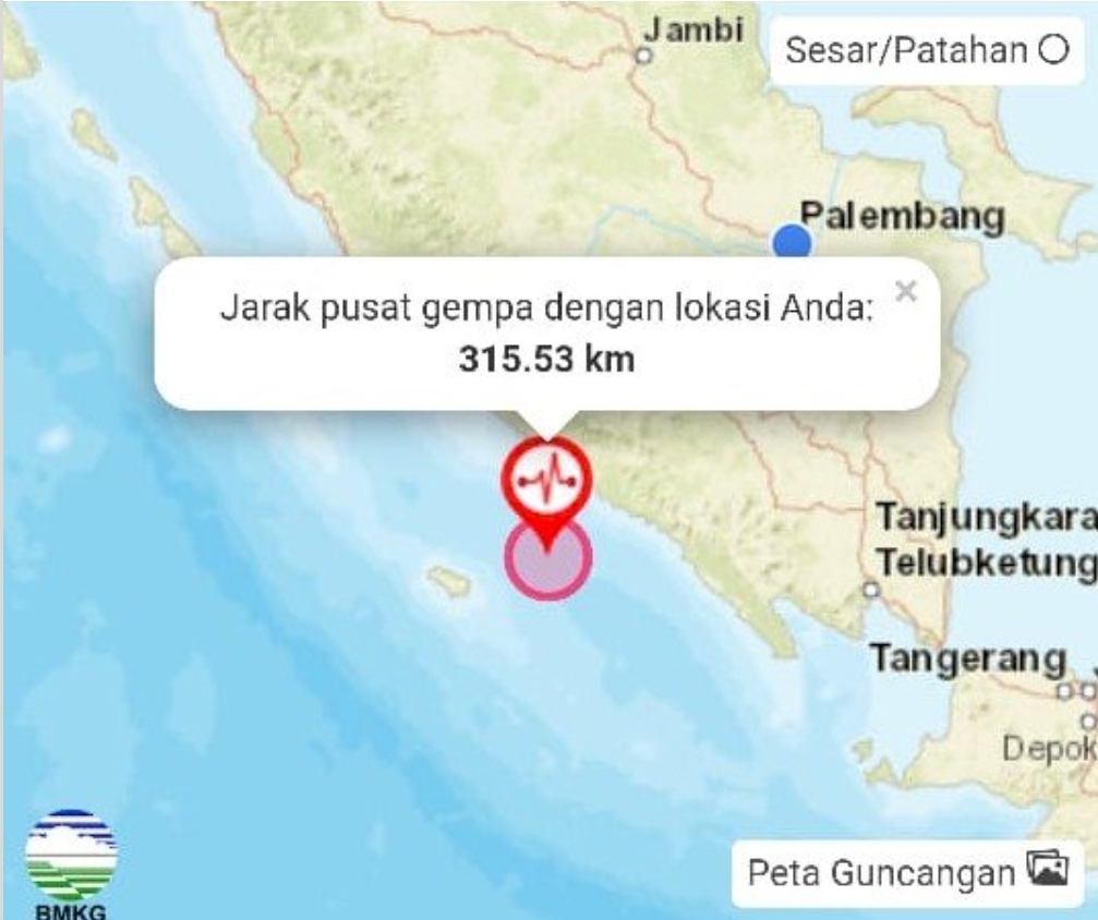 Gempa M 6,5 Kaur-Bengkulu Terasa Hingga Palembang