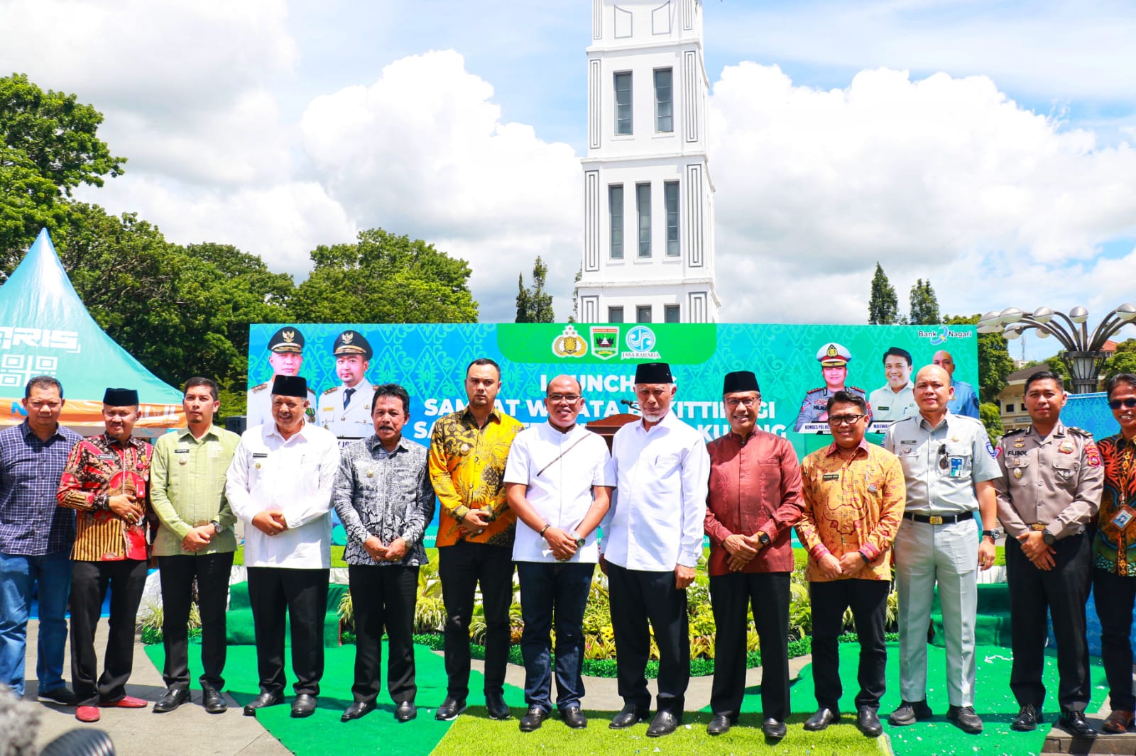 Bukittinggi.Dalam rangka meningkatkan minat masyarakat taat pajak dan mendukung elektronifikasi transaksi Pajak Kendaraan Bermotor, Gubernur Sumatera Barat, Buya Mahyeldi resmi melaunching Samsat Wisata dan Samsat Terminal serta Penyerahan Dana Bagi Hasil (DBH) Pajak Provinsi Triwulan I Tahun 2022 di Halaman Pelataran Jam Gadang Bukittinggi, Sabtu (04/06/2022).