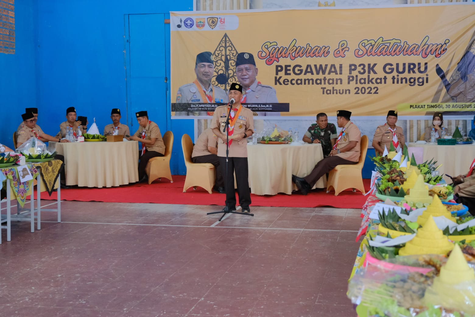 “Saya hari ini sangat terharu hari ini, ada sebanyak 57 tumpeng kebahagiaan dari penantian pejuang pejuang pendidikan. Kita Pemkab Muba kedepan akan terus berupaya meningkatkan kesejahteraan para Guru PPPK di Kabupaten Muba. Saya menyarankan kepada bapak-ibu tolong tanamkan sopan santun, moral dan etika yang baik kepada anak-anak didik kita termasuk ajaran agama sehingga anak anak kita memiliki etika sopan santun cerdas berbudi pekerti dan taat beribadah. Artinya beban bapak ibu sangat berat. Kami juga akan terus memperbaiki infrastruktur pembangunan di bidang pendidikan di Kabupaten Muba khususnya di kecamatan Plakat Tinggi ini, “tandasnya.